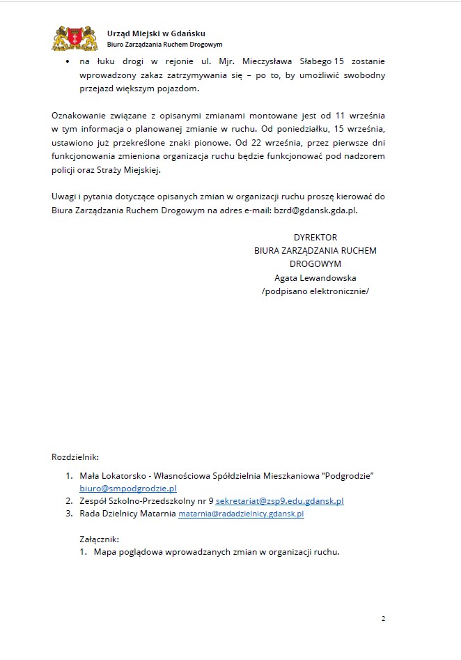 Od 22 września – pełne wejście w życie nowej organizacji ruchu; przez pierwsze dni działania – nadzór Policji i Straży Miejskiej.
