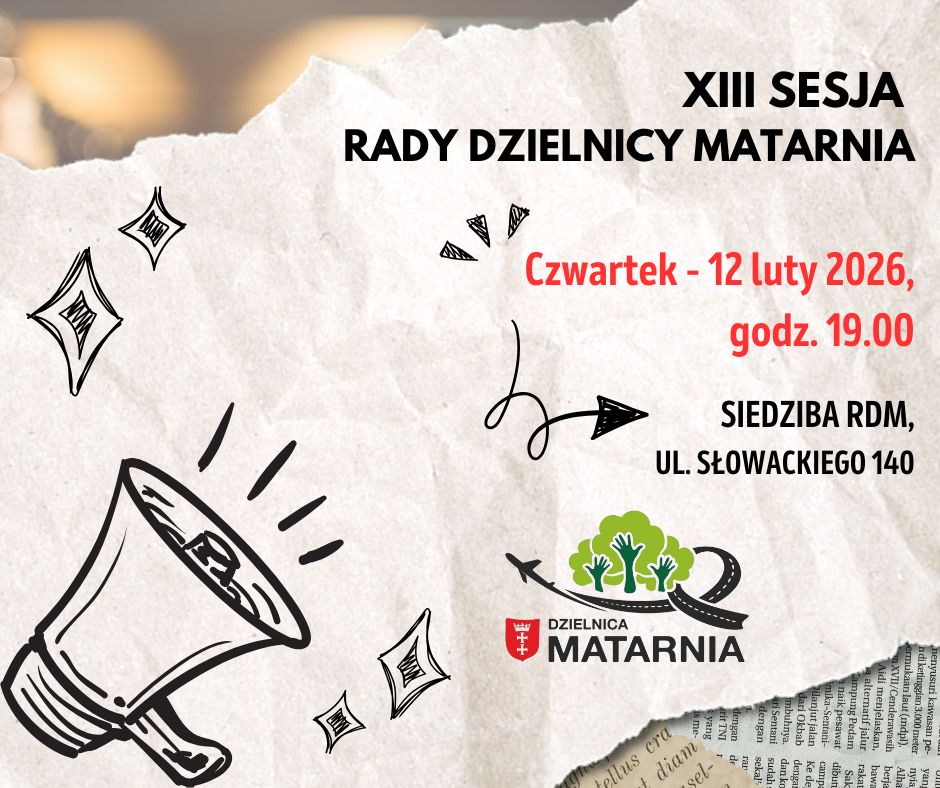 Szanowni Państwo! Zapraszamy Państwa serdecznie na obrady XIII sesji Rady Dzielnicy Matarnia, które odbędą się w dniu 12 lutego 2026 roku (czwartek) o godz. 19:00 w siedzibie Rady Dzielnicy przy […]